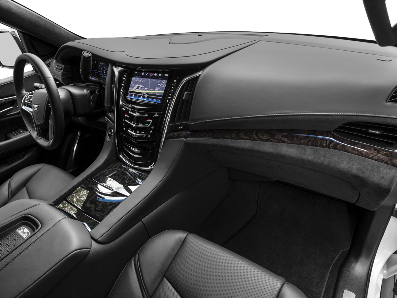 ASSIST STEPS, POWER-RETRACTABLE, RUNNING SIDE BOARD WITH LED LIGHTING with LED lighting, CADILLAC CUE INFORMATION AND MEDIA CONTROL SYSTEM WITH EMBEDDED NAVIGATION 8 diagonal color information display featuring touch response, haptic feedback, gesture recognition, Natural Voice Recognition and Phone Integration for Apple CarPlay® capability for compatible phone. Five USB ports, including one in the articulating storage door/bin and auxiliary audio port (STD), ENGINE, 6.2L V8 WITH ACTIVE FUEL MANAGEMENT Spark Ignition Direct Injection (SIDI) and Variable Valve Timing (VVT), includes aluminum block construction (420 hp [313.2 kW] @ 5600 rpm, 460 lb-ft of torque [621 N-m] @ 4100 rpm) (STD), TRANSMISSION, 8-SPEED AUTOMATIC, 8L90 (STD).