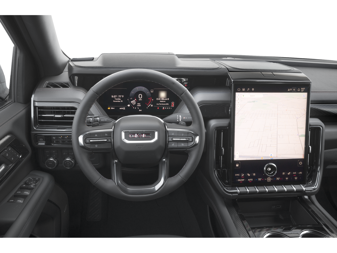 AT4 PREMIUM PACKAGE includes (CWM) Technology Package, (C3U) Panoramic power sunroof and (B3L) power-retractable assist steps with perimeter lighting, TECHNOLOGY PACKAGE includes (DRZ) Rear Camera Mirror and (UV6) Head-Up Display (Also includes (NWM) Advanced Security Package content, (ATN) second row power bucket seats and (DCH) power-sliding center console. LPO, FLOOR LINER PACKAGE (dealer-installed) (Includes (RIA) 1st and 2nd row all-weather floor liners, LPO, (RIB) 3rd row all-weather floor liners, LPO and (CAV) all-weather cargo mat, LPO. SUSPENSION, AIR RIDE ADAPTIVE, ENGINE, 5.3L ECOTEC3 V8 with Dynamic Fuel Management, Direct Injection and Variable Valve Timing, includes aluminum block construction (355 hp [265 kW] @ 5600 rpm, 383 lb-ft of torque [518 Nm] @ 4100 rpm) (STD), TRANSMISSION, 10-SPEED AUTOMATIC electronically controlled with overdrive, includes Traction Select System including tow/haul (STD), MAX TRAILERING PACKAGE includes (UKW) Blind Zone Steering Assist with Trailering, (PZ8) Hitch View, (UET) Smart Trailer Integration Indicator, (JL1) integrated trailer brake controller and (V03) extra capacity cooling system, ADVANCED SECURITY PACKAGE includes (UTR) self-powered horn, (UTV) interior movement sensors, (UTU) vehicle inclination sensors, (UTW) glass break sensors in rear quarter glass and liftgate window and door and liftgate lock shields, AUDIO SYSTEM, 16.8 DIAGONAL PREMIUM GMC INFOTAINMENT SYSTEM with high contrast display and local backlight dimming, with Google built-in compatibility, including navigation capability, color touch-screen, multi-touch display, connected apps, personalized profiles for each drivers settings, and Natural Voice Recognition (STD), PREMIUM CAPABILITY PACKAGE WITH ACTIVE RESPONSE 4WD includes (F47) Air Ride Adaptive suspension and (G96) electronic limited-slip differential.